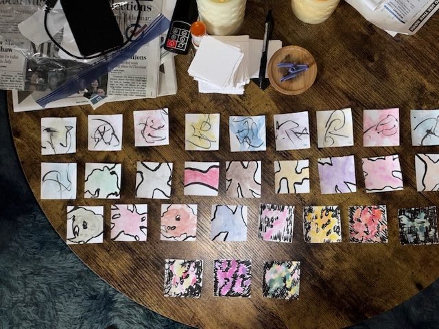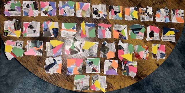 A glimpse into 256 small mixed-media collages, each telling its own story.